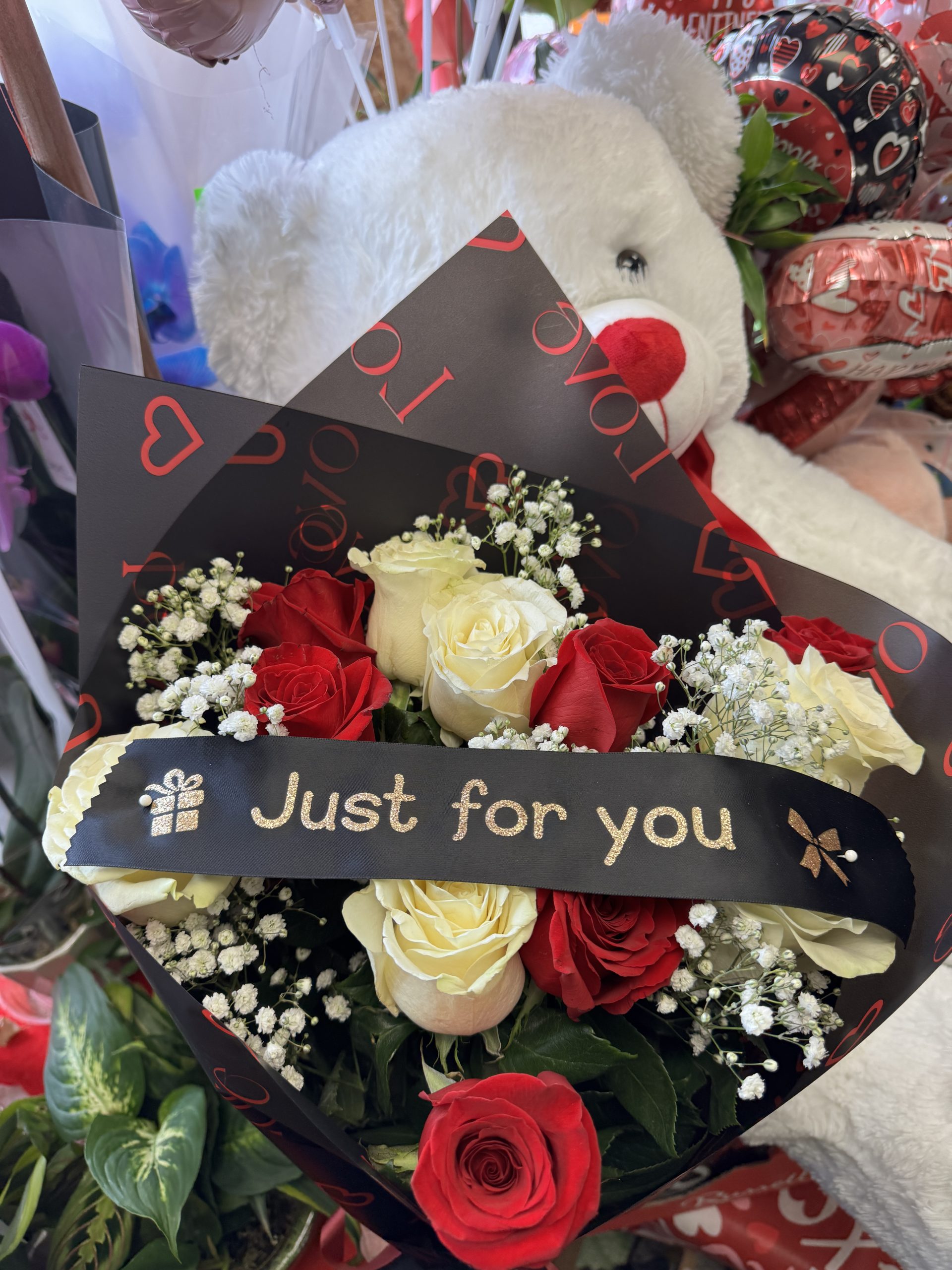 Be the first to review “VD White & Red Roses Wrapped-12 (Bear not included)”